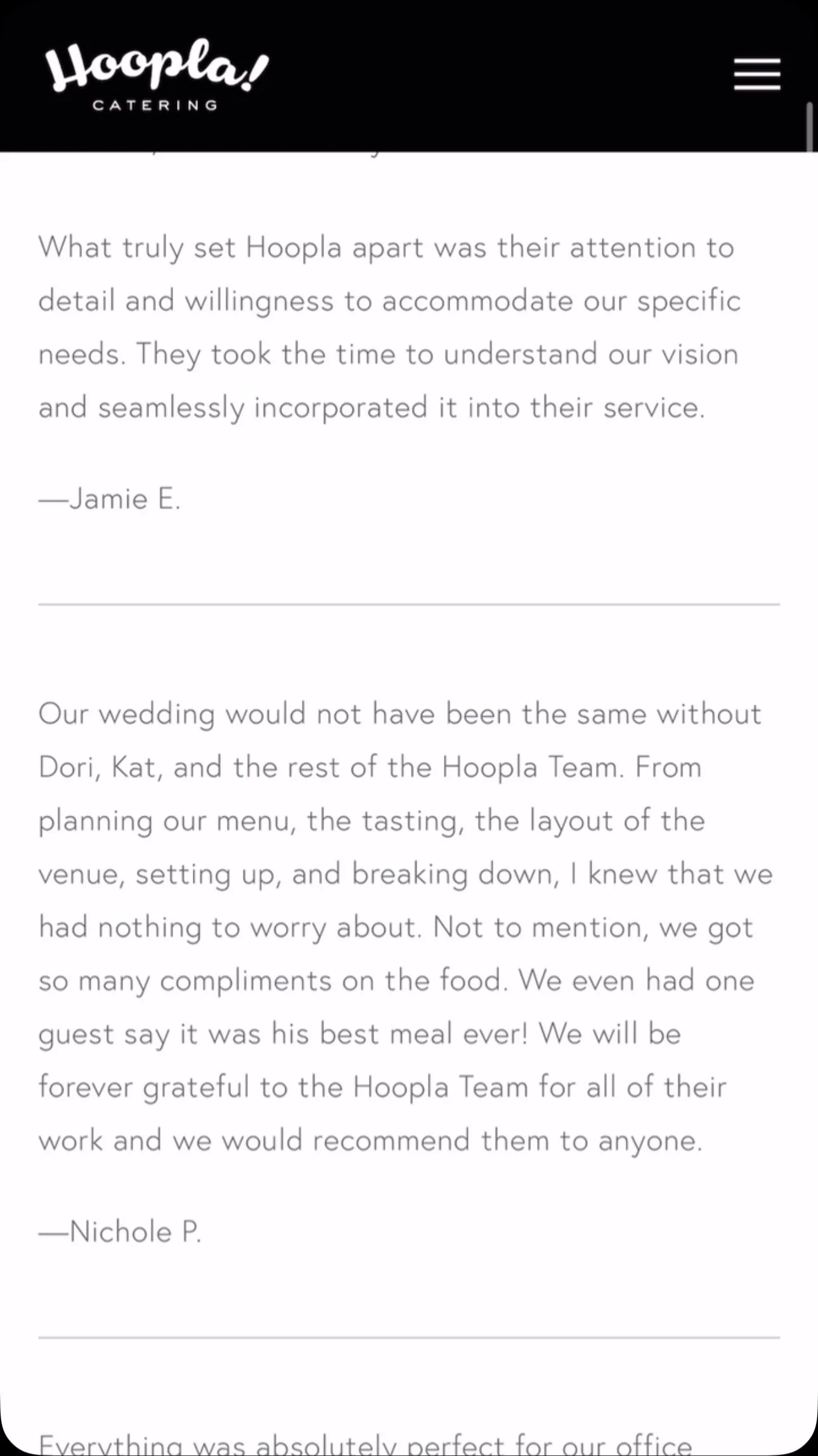 With his catering team, Chad brings his unconventional, boutique style anywhere you want to be, from simple yet delicious work lunches and elegant dinner celebrations to large scale galas. No matter the size of the event, Hoopla! Catering brings the same standard of excellence you've come to know and love from the restaurant straight to you.